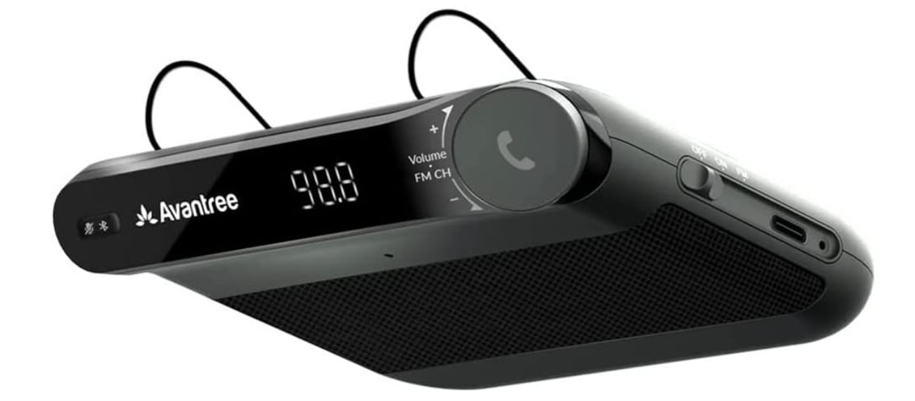 We found the Avantree Roadtrip handy for connecting older cars to Bluetooth devices quickly. Its dual speakers are loud enough for podcasts and music while driving. The built-in noise cancellation made calls clear on our end, but sometimes the other side wasn’t as loud or crisp.