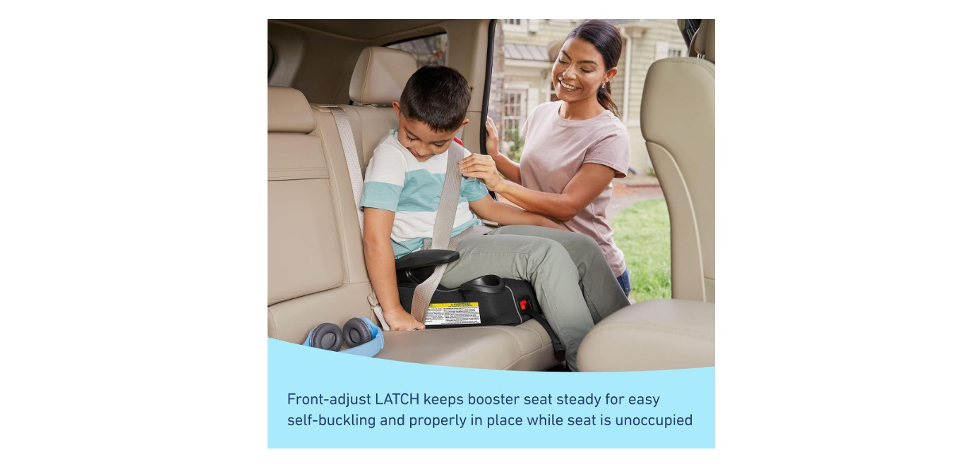 This booster seat was straightforward to set up in our vehicle thanks to the LATCH system. It holds firmly in place, which makes it easier for kids to buckle themselves without the seat moving around. The seat feels sturdy and the fabric is easy to clean after snacks or spills.