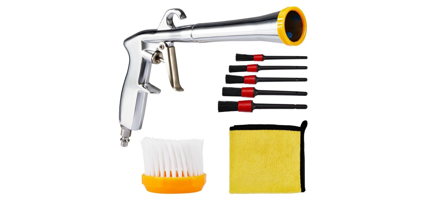 This tool works well for quick and detailed car cleaning when paired with an air compressor, making tough spots easier to reach.