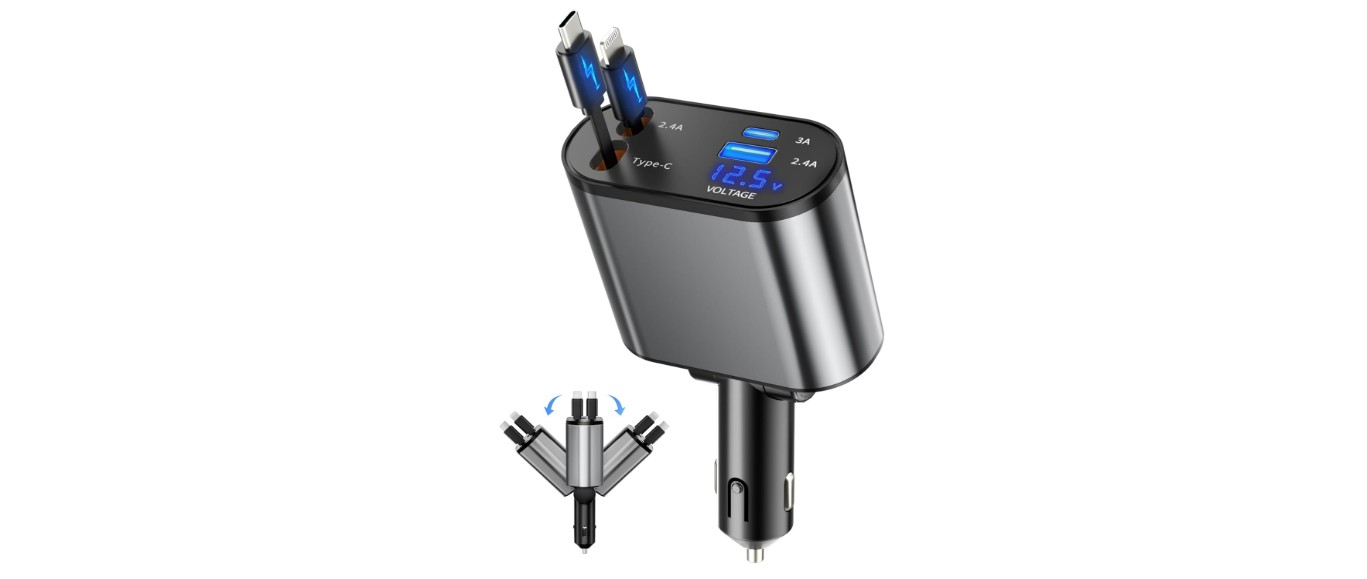 The main downside is the size. In smaller cars, the charger can feel a little large, and since it only works with the cigarette lighter socket, it limits placement options. Also, while the retractable cords are neat, they don’t extend very far, which might be an issue if you want more reach. Overall, it’s a solid, practical choice for anyone wanting a tidy and reliable car charging setup.
