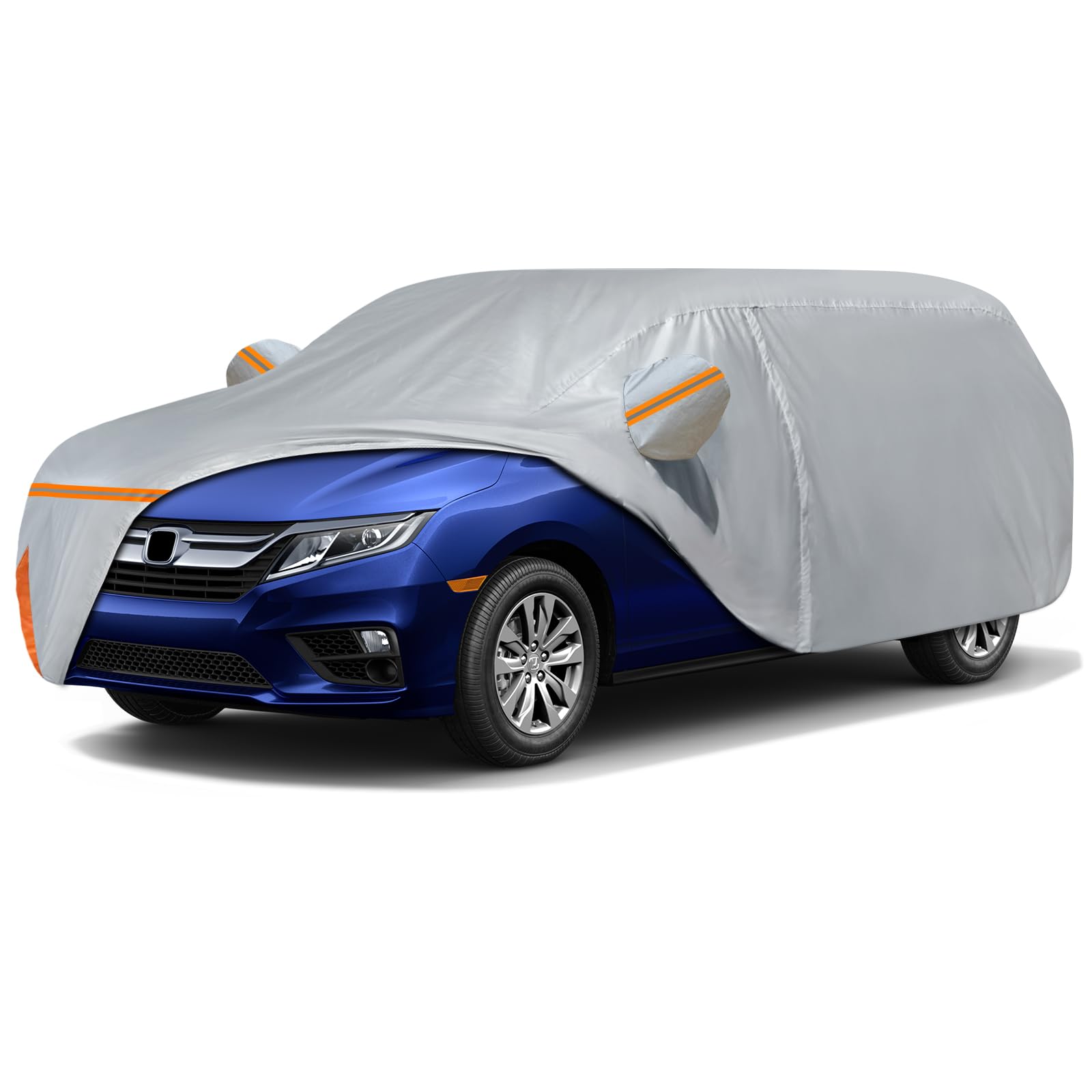 The fabric feels strong and keeps water out well. It also blocks sun rays to prevent the car from getting too hot. While it’s designed for the Odyssey, the cover’s shape fits smaller cars like the Jazz fairly well, but checking measurements is important.