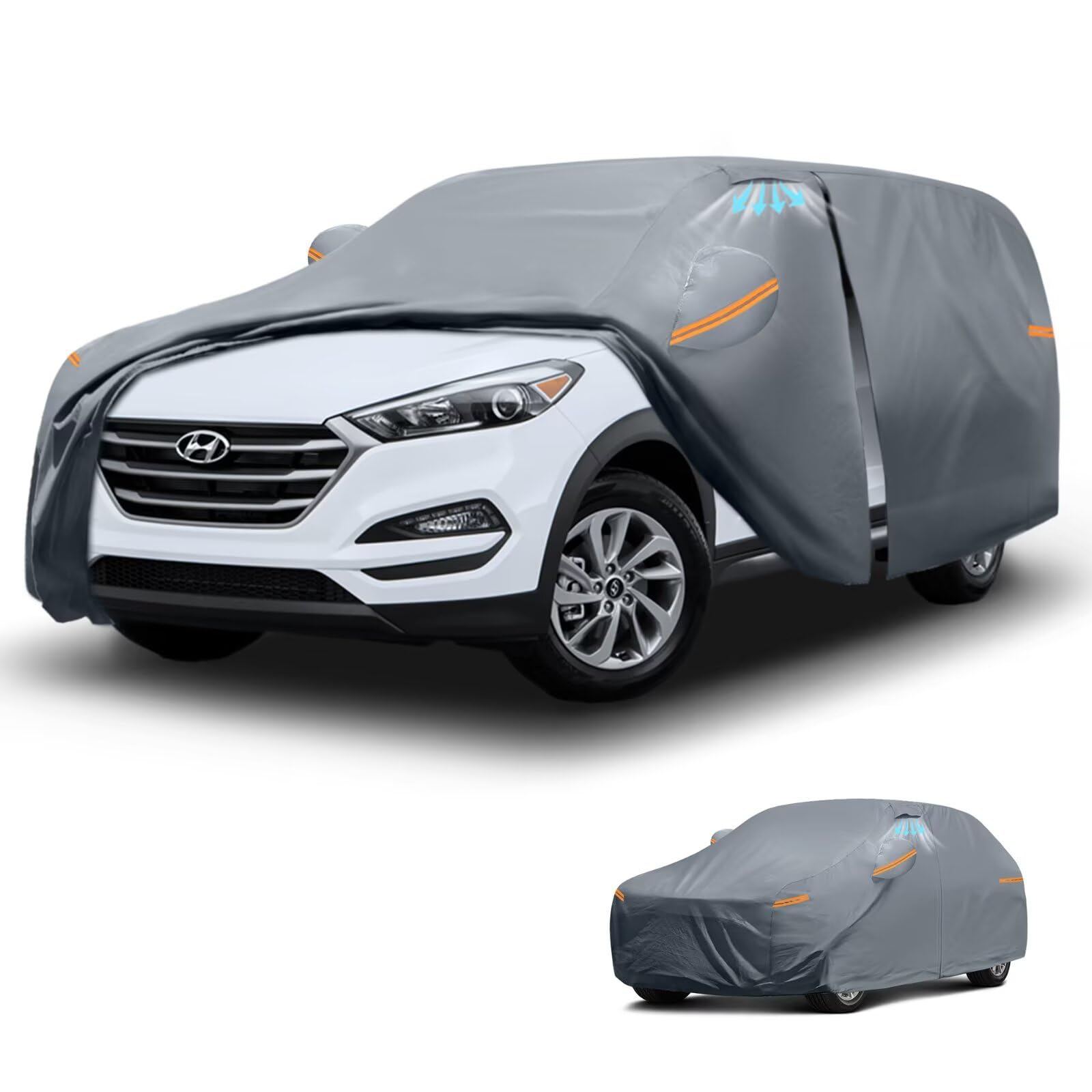 Although made for a Tucson, this product shows how effective a well-designed cover can be. The cotton lining feels gentle on paint, which is a plus. Reflective strips help you spot the car in the dark, adding safety during night parking.