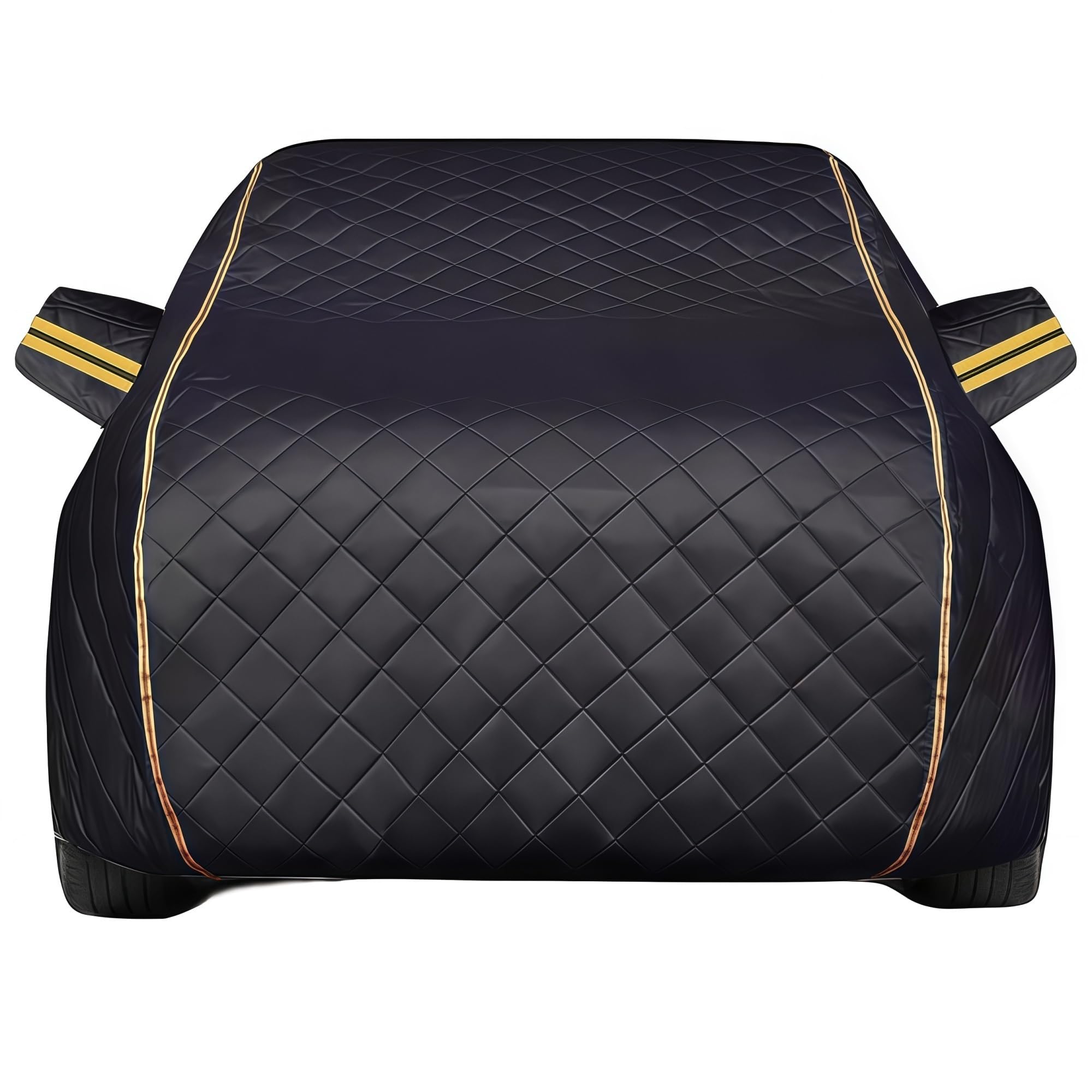 The waterproof material really works well. After heavy rain and even snow, the car stayed dry underneath. The soft cotton lining gives peace of mind that the paint won’t get scratched, which is important if you put it on and take it off regularly.