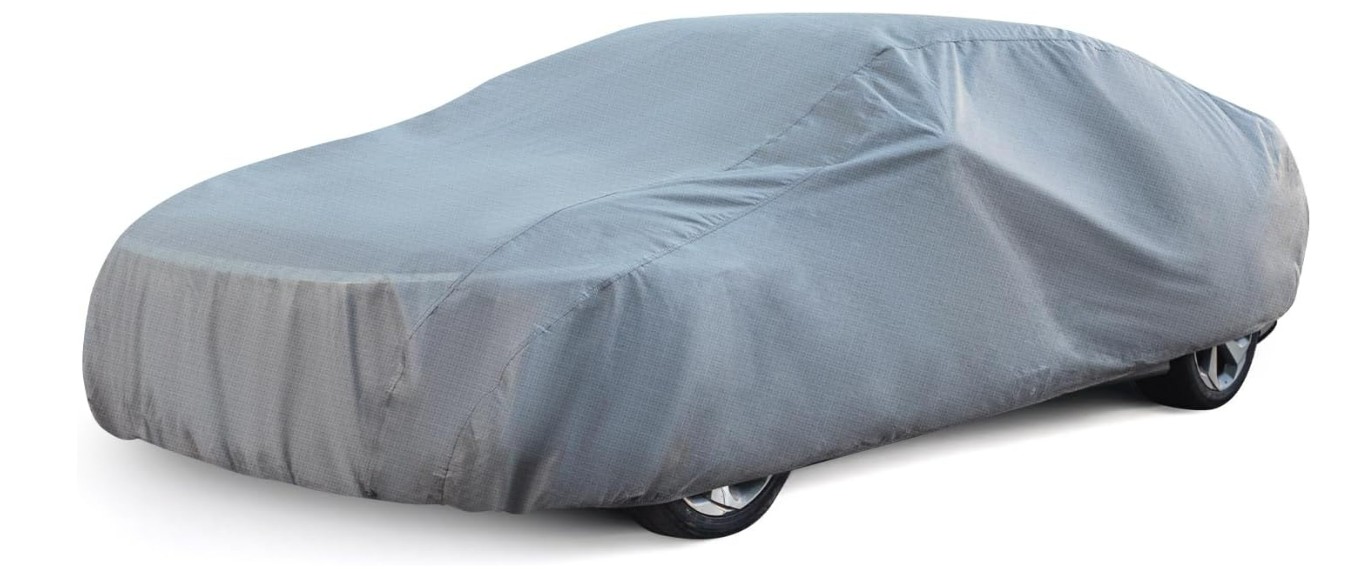 We found this cover does a good job blocking rain, dust, and sun damage. The waterproof fabric kept our car dry even during heavy storms. The design fits sedans up to about 177 inches long and covers the entire vehicle.