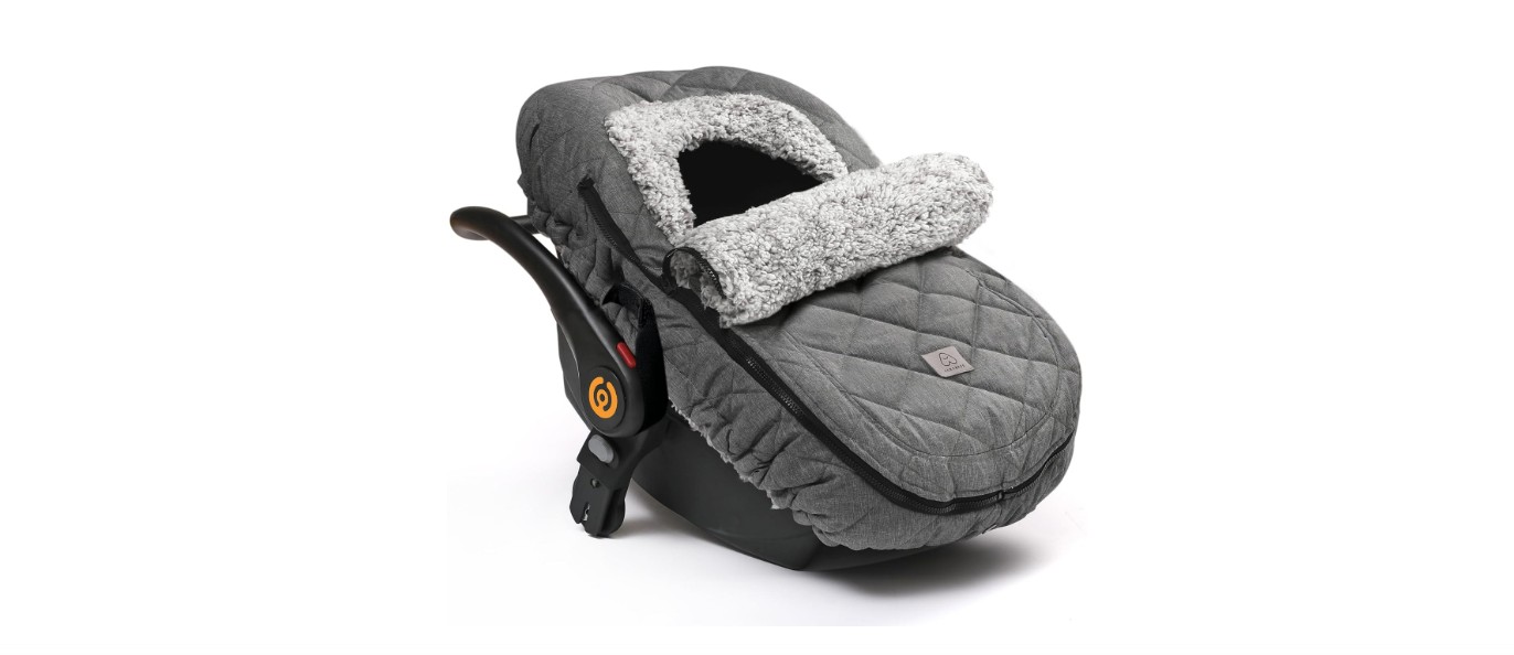 We chose the CozyNest Infant Car Seat Cover as our top pick. It fits most infant car seats securely and offers good protection from wind, rain, and cold weather.