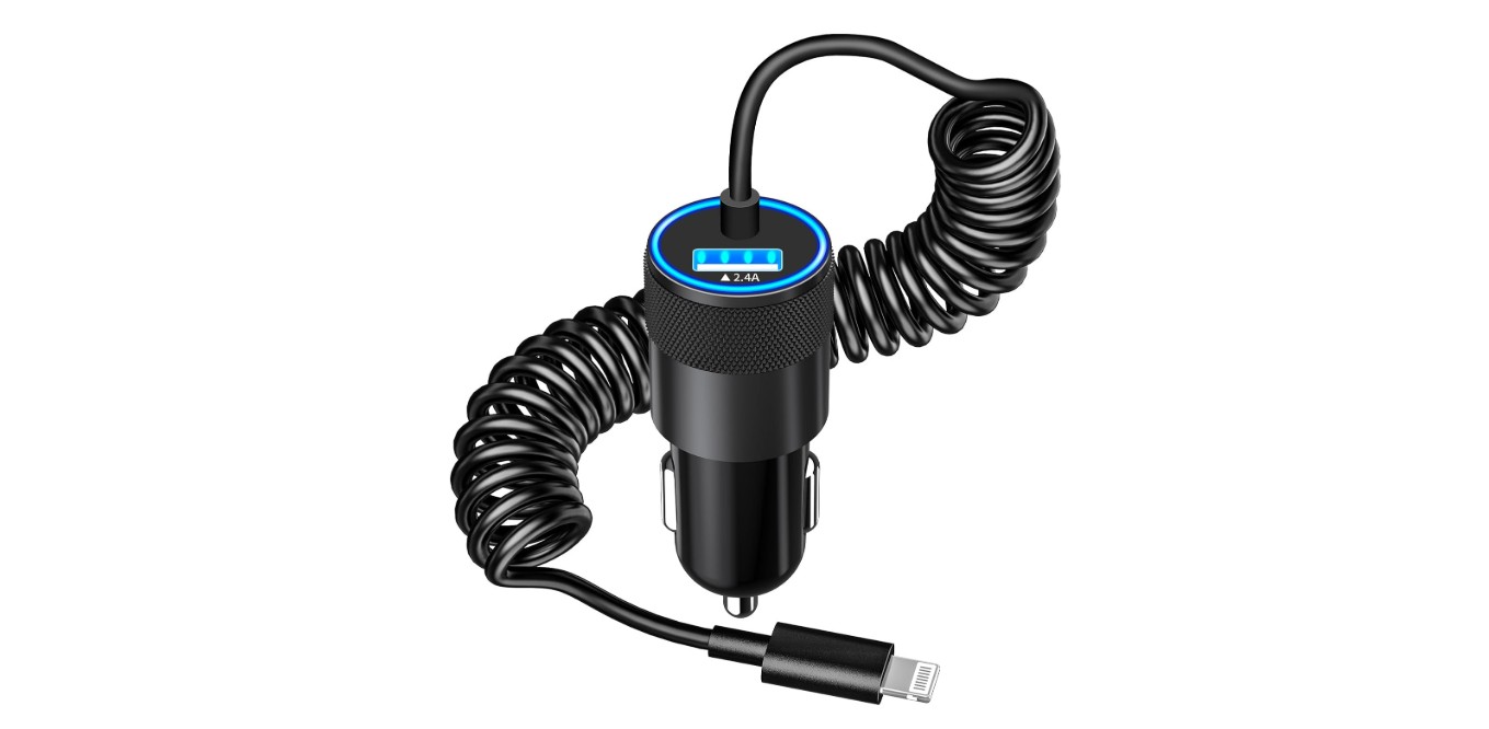 This charger offers fast, safe charging with a convenient built-in coiled cable that works well for iPhones on the go.