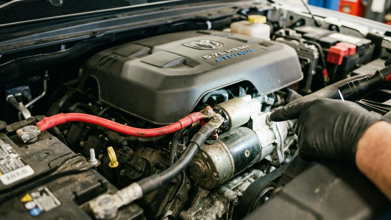 The Ram 1500’s electrical system includes the starter, solenoid, wiring, and fuses. Regular inspections identify problems before they cause starting clicks and no-crank events.